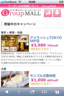 『GroupMall(グループモール)』は、2010年7月にオープンした女性に人気の高いレストランや美容サロン、スクール等の限定割引チケットを販売するフラッシュマーケティングサイトです。