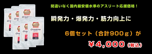「トップアスリートシリーズ」のクレアチン6個セット(900g)を4,000円の特別価格で販売開始した。