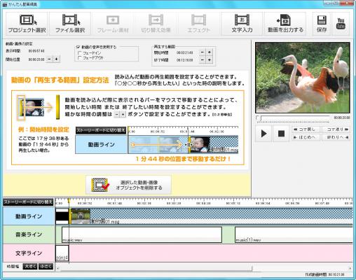 『かんたん動画編集』は動画・画像・音楽を使って動画を作成できるソフトです。