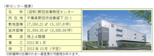 (仮称)野田吉春物流センターの詳細は、TLロジコムホームページ「http://www.tl-logicom.co.jp/」のトップバナーからご覧いただけます。