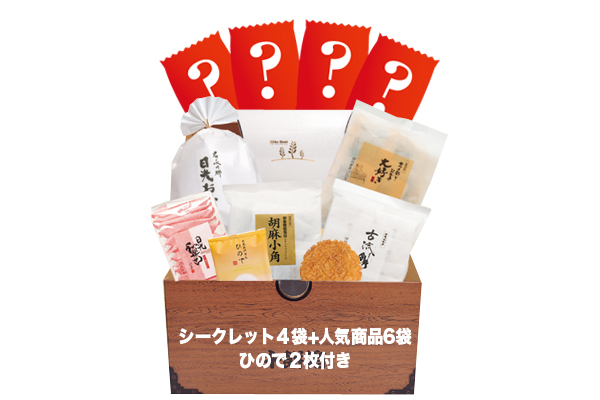 福箱でしか手に入らない福箱限定商品『小判煎』に加え、