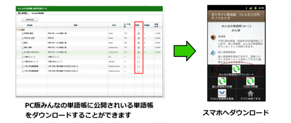 個人単語帳はサーバーに保管されパソコン、スマホ(Andoroid)と連携します。
