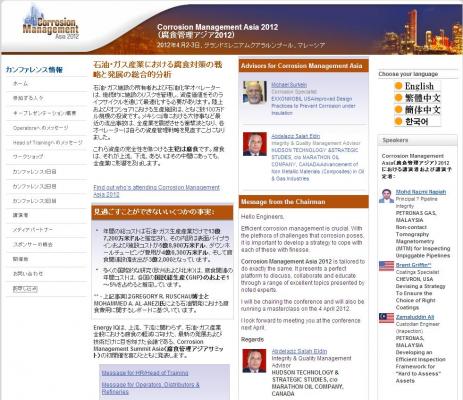 株式会社グローバル インフォメーションでは、皆様の利便性を図る為に、日本語、英語、韓国語、中国語で「Corrosion Management Asia 2012 (腐食管理アジア2012)」の情報を提供するとともに、会議の参加のお申し込みを承っております。