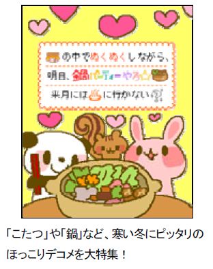 コンテンツ内容:「こたつ」や「鍋」など、寒い冬にピッタリのほっこりデコメを大特集!