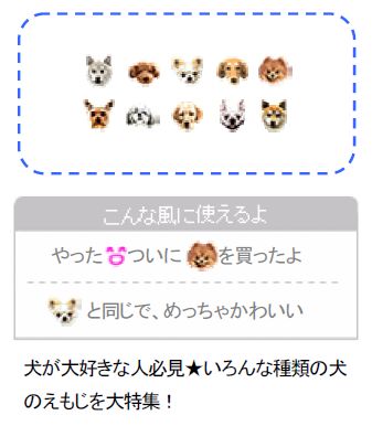 コンテンツ内容:犬が大好きな人必見★いろんな種類の犬のえもじを大特集!