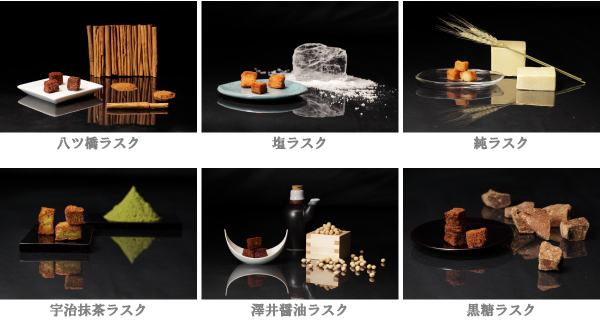 そんな街の風情を包み込んだのが「八ツ橋ラスク」。桂皮末(ニッキ)の風味を生かし、一つひとつ丁寧に焼き上げました。