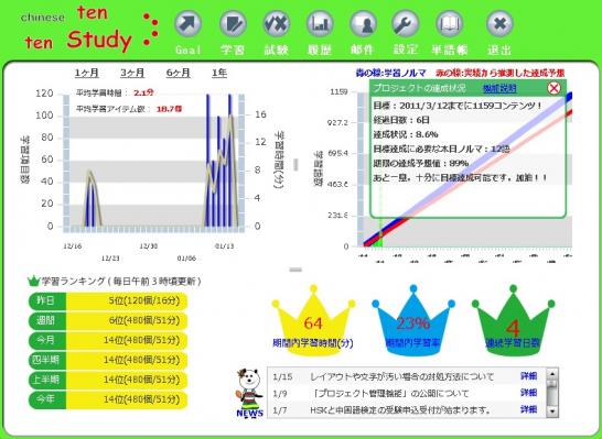 ・プロジェクト管理機能・・・学習の達成状況やその日に必要な学習量等が一目瞭然 ・時間制限付クイズ形式の学習方法・・・適度な緊張感と集中力をもって学習可能