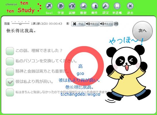 ピンインや声調を学習済みの中国語初級レベルから中級レベルの学習者の利用を想定している。