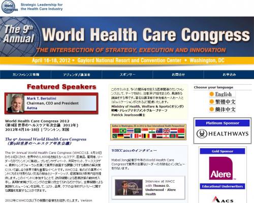 株式会社グローバル インフォメーションでは、皆様の利便性を図る為に、日本語、英語、韓国語、中国語で「The 9th Annual World Health Care Congress 2012 (第9回世界のヘルスケア年次会議 2012年)の情報を提供するとともに、会議の参加のお申し込みを承っております。