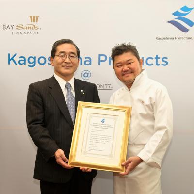 鹿児島県産の新鮮な農水産品への従来からのサポートに対し、クエック氏は本日、鹿児島県知事から「推奨レストラン認定状」を授与されました。鹿児島県がこの世界基準とも言える認定状が授与するのは2度目で、シンガポール人としてはクエック氏が初となります。最初の認定状は2010年に香港の5つ星ホテルが授与されています。