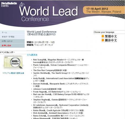 株式会社グローバル インフォメーションでは、皆様の利便性を図る為に、日本語、韓国語、中国語で「4th World Lead Conference 2012 (第4回世界鉛会議2012)」の情報を提供するとともに、会議の参加のお申し込みを承っております。