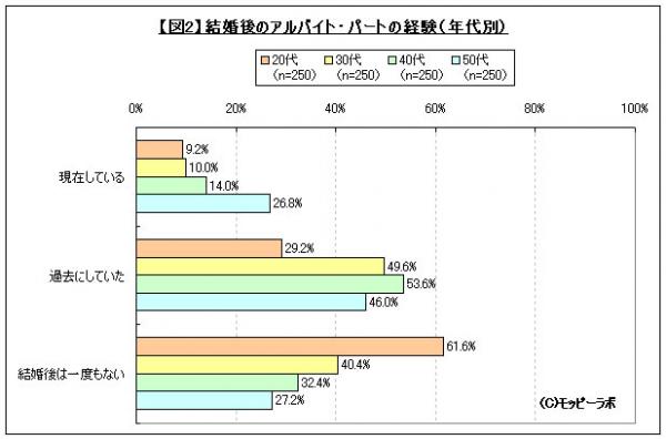 図表参照:【図2】結婚後のアルバイト・パートの経験(年代別)