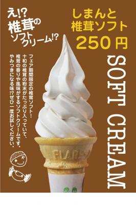 このフェアにあわせ、新商品の「しまんと椎茸ソフト」の販売を開始いたしました。