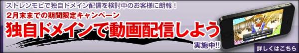 今回は、この独自ドメインによる動画配信をさらに広く行っていただくため、新規ドメイン取得無料、DNS設定はストレン実施で手間がかからず、独自ドメインで動画配信を行えるキャンペーンを実施することとなりました。