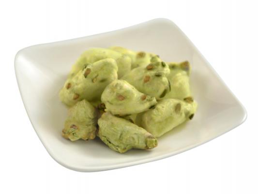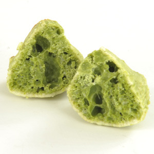 見た目は、だだちゃ豆おかきがキレイなうぐいす色になった状態。