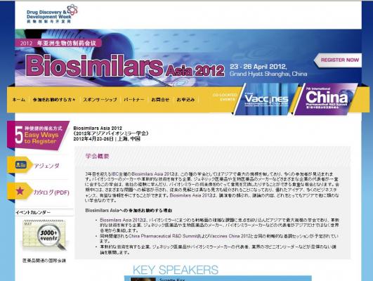 学会:「Biosimilars Asia 2012 (2012年アジアバイオシミラー学会)」