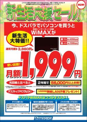 【ドスパラWiMAX「新生活応援セール 第2弾!」概要】