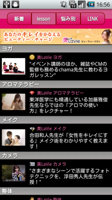 美LaVie人気のコンテンツの「ヨガ」や「整体」また「ヘアアレンジ」など、見たいコンテンツを見たい時に、また忙しい女性には隙間時間を利用して、視聴してもらおうと、新アプリを開発しました。