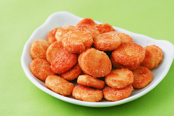 サクサクの食感に仕上げた、一口サイズの甘辛せんべいを、