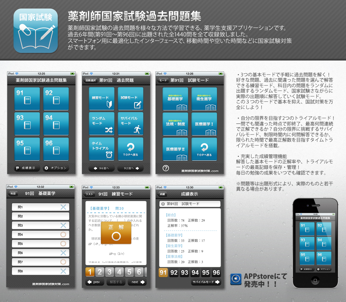 「薬剤師国家試験過去問題集」(iPhone版)