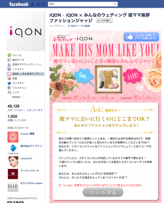 1■iQON公式Facebookページの「ジャッジ」にアクセス! http://id-id.facebook.com/iqon.jp?sk=app_306403102745994