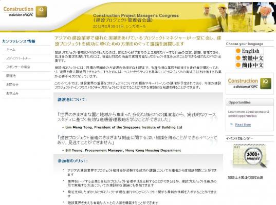 株式会社グローバル インフォメーションでは、皆様の利便性を図る為に、日本語、英語、韓国語、中国語で「Construction Project Manager’s Congress (建設プロジェクト管理者会議)」の情報を提供するとともに、会議の参加のお申し込みを承っております。