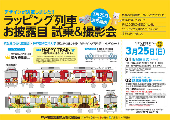 このラッピング列車のデビューを記念して、平成24年3月25日(日)に「お披露目 試乗&撮影会」が開催されます。