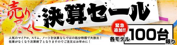 FRONTIERはこのたび、マイクロタワー、スリムタワー、ノートPCを処分特価で販売する「決算セール」を開催いたします。お手軽から高性能まで全12モデルをご用意し、【最大30%OFF】の激安プライスにてご提供いたします。※各100台限り、売切れ次第終了となります。