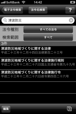 ● 無償で提供されている iPhone 版『電子法令検索』が必要です。