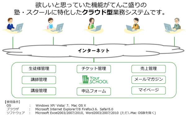この度、塾・スクールなど教育事業向けクラウド型業務システム「Your-SCHOOL(ユアスクール」を無料でお試しいただける無料モニターを募集いたします。