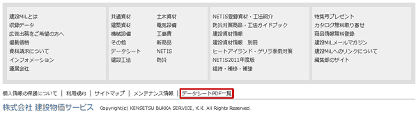 「データシート」は、月刊「建設資材情報」の別冊(年1回発行)に掲載されている建設資材・各種工法の解説ページです。