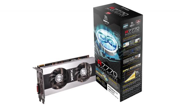 XFX R7770 BLACK EDITION FX-777A-ZDBCは、AMD Radeon HD7770、GDDR5-1GBメモリー、ストリーミングプロセッサ640ユニット搭載、DirectX 11、OpenGL 4.2に対応したグラフィックスカードです。特許を取得して優れた冷却性能を発揮する「Ghost Thermal Technology」や高品質設計Duratecコンポーネントなど独自の技術を搭載、他の追随を許さない究極の性能と優れたオーバークロック耐性を誇ります。GPUコアクロックを1000MHzから1095MHzにオーバークロックしたモデルです。
