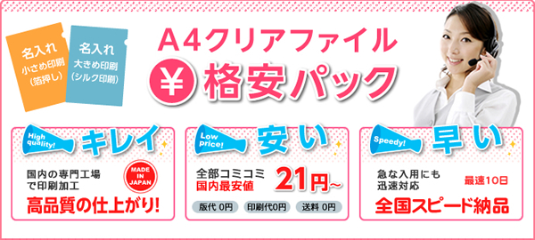 ■特集ページ:名入れクリアファイル格安パック