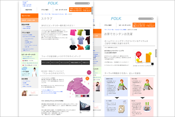 商品の紹介だけではなく、「支払い方法に関する情報」や、「事務服でも自宅で洗濯出来る」といった、「ユーザーが知りたい!」要望にも応える情報サイトとなっています。