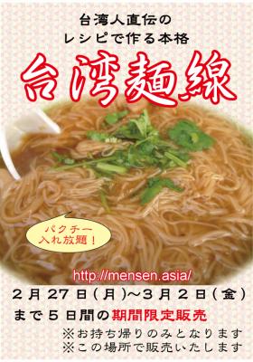 イベントURL:台湾麺線Love! http://mensen.asia/