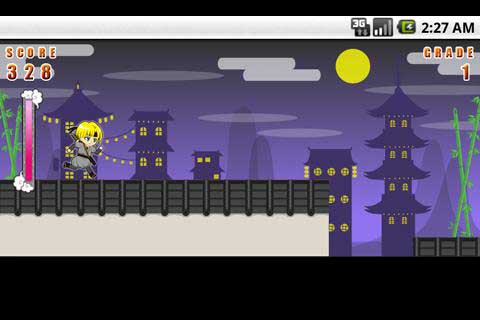 「忍者Dash Final」は屋根の上を疾走する見習い忍者を操作して、ひたすら走り続けて高得点を競うワンボタン簡単アクションゲームとなります。左側に表示されるゲージのある限り何度でもジャンプが出来、足場の無い場所も進む事が出来ます。ゲージは地面を走ると次第に回復して行きます。また、獲得した得点は累積されて一定値を超えるとグレードアップしていきます。グレードが上がる毎に難易度も上がってきます。