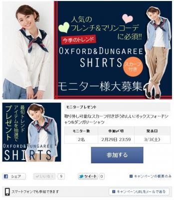 同社は、レディス通販サイトGirls Closet Door ガルクロのフェイスブックページで今年2月上旬に春の新作ブラウスが当たるモニターキャンペーンを手始めに、その後、今年流行のオックスフォードブーティに使える500円クーポンが当たるスピードくじや、スカーフ付きのオックスフォード&ダンガリーシャツのモニタープレゼントなど積極的にプロモーションを行っている。