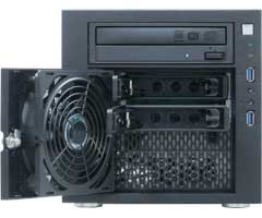 2台の3.5インチ・リムーバブル・ベイと、OS起動ディスクが収納可能な2.5インチ固定ベイを装備しています。各種コントローラ・カードが実装可能な16x PCI-Express2.0拡張スロットに、6Gbps SAS/SATA RAIDコントローラを増設すると、ドライブのホットスワップ化、より信頼性の高いデータ保護機能(2)の導入、SASドライブの使用が可能になります。6ポートのUSB2.0(2*フロント)ポートには、各種ペリフェラルが接続できます。