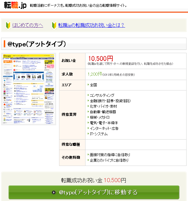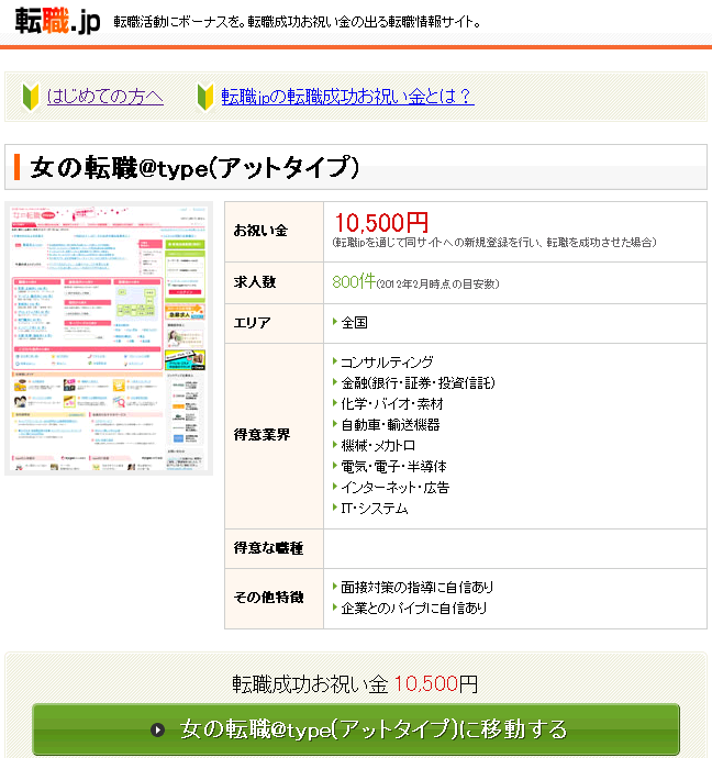 転職成功お祝い金:10,500円