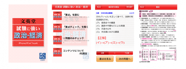 『文英堂 試験に強い政治・経済』は文英堂の学習参考書『試験に強い政治・経済 要点ハンドブック』をもとに、試験に出る「要点」や1問1答形式の「要点チェック」216問を収録したiPhoneアプリケーションです。定期テストからセンター試験までの学習をカバーできる内容となっております。