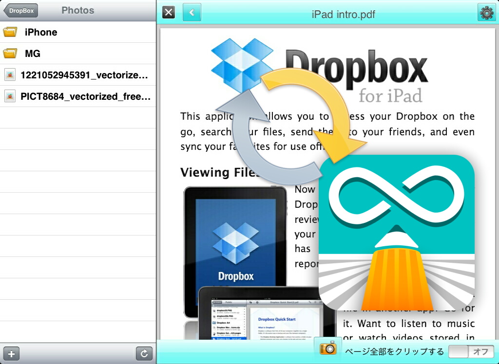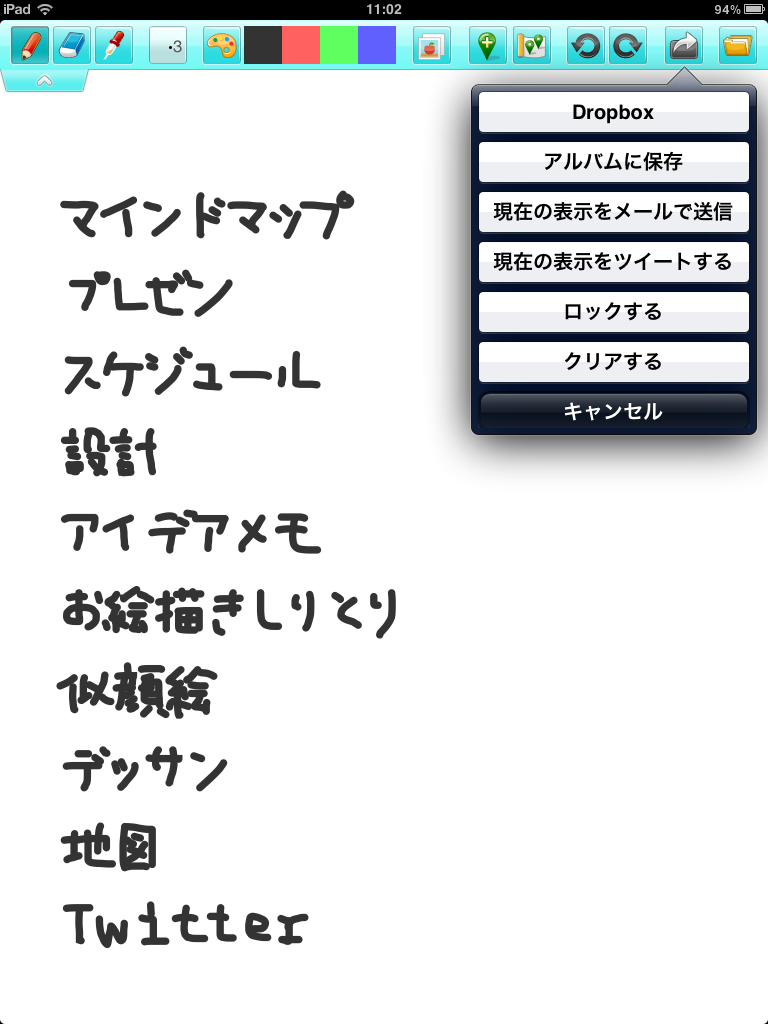 また、DropBoxでの保存や読み込み、ツイート、メールへの添付などにより、外部との共有が可能です。