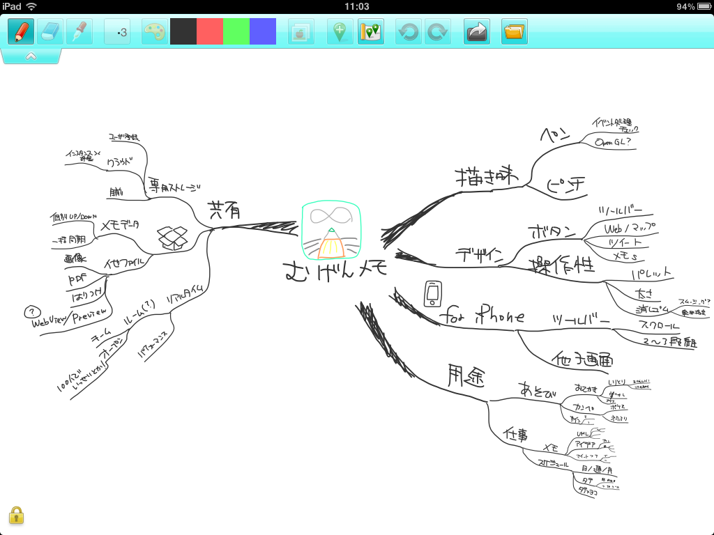 むげんメモは、iPad/iPhone向けのシンプルな手描きメモアプリです。