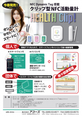 また、「HEALTH Clip!」は、「セルフ・プログラミング方式」を採用しており、NFCを利用して完成品の状態でお客様オリジナルソフトを書き込むことができますので、小ロットのオリジナル商品ご注文に対応が可能となります。