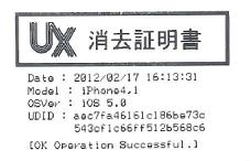「モバイルプライヤー」は暗号化されたデータに上書きをしているためオリジナルデータの復旧が不可能となり、再販企業の皆様だけでなくリース会社様など、数多くの企業様が、在庫として保有されているiPhone/iPadの休眠資産を安心して再販することができます。更に、モバイルプライヤーによる消去作業の完全実施を証明すべく、各端末シリアルごとに「消去証明書」が発行されるので、何らかのトラブルがあった場合でも、問題の原因特定やトレースが簡単に出来るようになります。