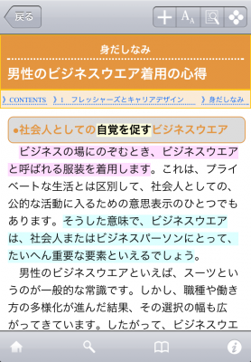 ●蛍光ペンを使うように重要箇所に色をつけるマーカー機能(*要iOS3.2以降)