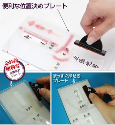 付属の「位置決めプレート」を使用することで、まっすぐ曲がらず、簡単に正しい位置に捺印する事ができます。