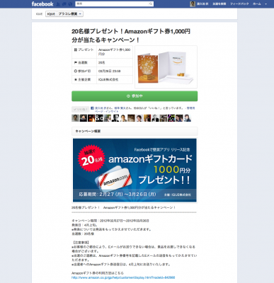 企業が、情報感度の高いFacebookユーザーを自社の「ファン」として集め、自社商品プレゼントなどの「イベント」を通じて直接的な交流を重ね、でエンゲージメントを強化することができる、「懸賞キャンペーン構築プラットフォーム」です。