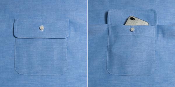 視線が集まるシャツを更にパワーアップするポケットは、スマートフォンを入れるスペースも減ってくるので、ボタン付きのこの形状はオススメです。