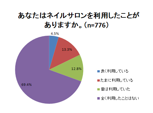 ――ネイルの利用状況を調査した結果、普段は自宅で気軽にネイルするセルフネイル派が47.1%、仕上がりのキレイさを求める大切な日はネイルサロンを利用という女性が30.6%と日常的と記念日等で使い分ける傾向となりました。