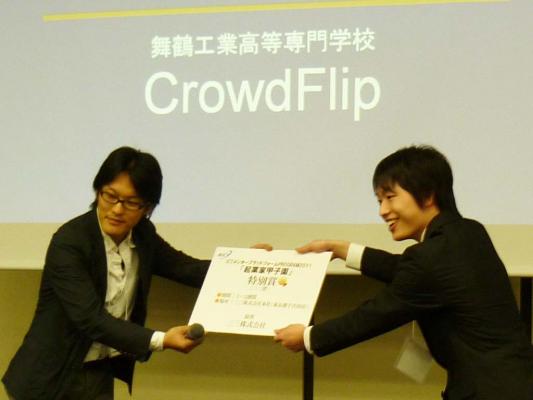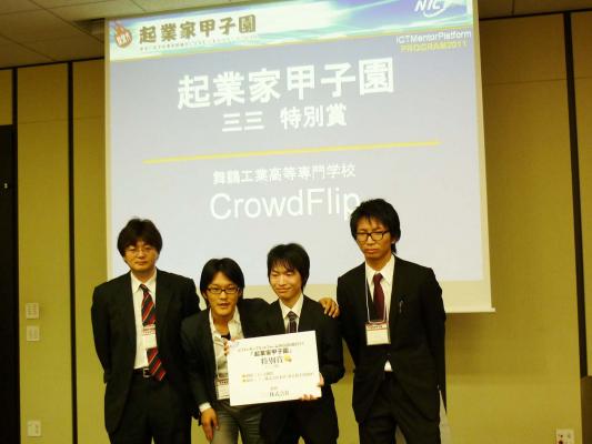 三三は、舞鶴工業高等専門学校のチームCrowdFlip(代表者:稲垣 洸雄さん)を特別賞に選定いたしました。